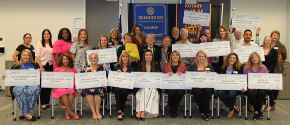 Local charities and Humble ISD representatives display oversized “checks” they received from the Rotary Club of Lake Houston Area during the club’s annual Grants and Sponsors Appreciation Luncheon held at the Lake Houston Family YMCA in March. Also pictured are business sponsors who support the Rotary program. Rotary distributed over $85,000 to eighteen charities including a check from Rotary District 5890. Club President Eric Gomez is on the far right in a blue Rotary shirt. Pam McNair, grants committee chair, is in the back row center also wearing a blue Rotary shirt. - Photo by Rotarian Pat Guard, courtesy of The Forest Image magazine.